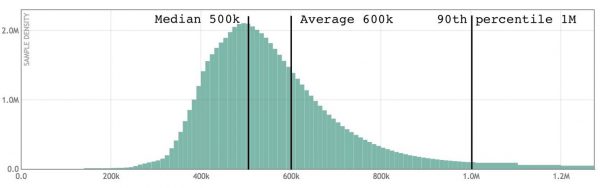 现在您可以看到我们的平均水平,第 50 百分位(也称为中位数)和第 90 百分位。第 90 百分位是 90% 样本低于该值的值。