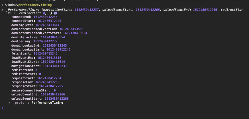| redirectTime | Page redirection time | redirectEnd – redirectStart | If the current document and the document that is redirected to are not from the same origin, set redirectStart, redirectEnd to 0 |