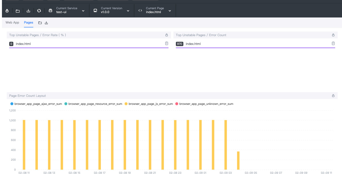 - Top Unstable Pages / Error Count,Top N Error Count 页面的 Selected 版本排名。