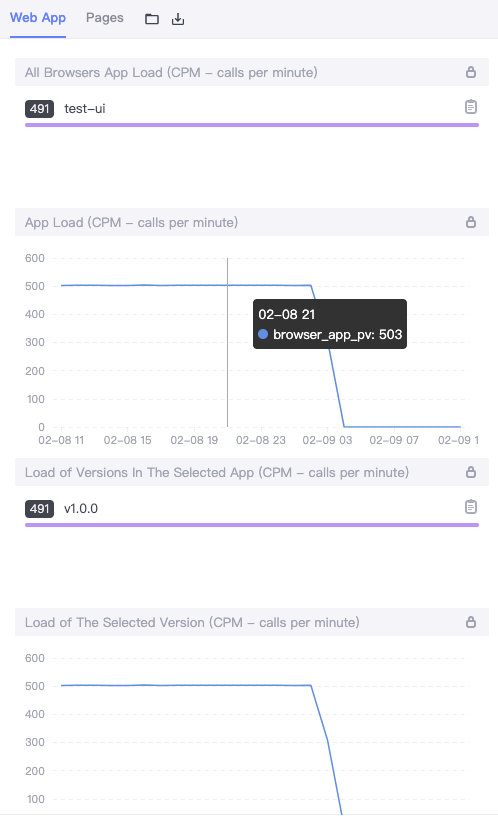 让我们来看看下图中的结果。它显示了最受欢迎的应用和版本,以及一段时间内 PV 的变化。