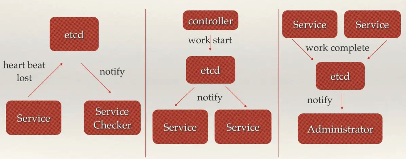 一种注册服务和服务健康状况的机制。 用户可以在 etcd 中注册服务,并且对注册的服务配置 key TTL,定时保持服务的心跳以达到监控健康状态的效果。