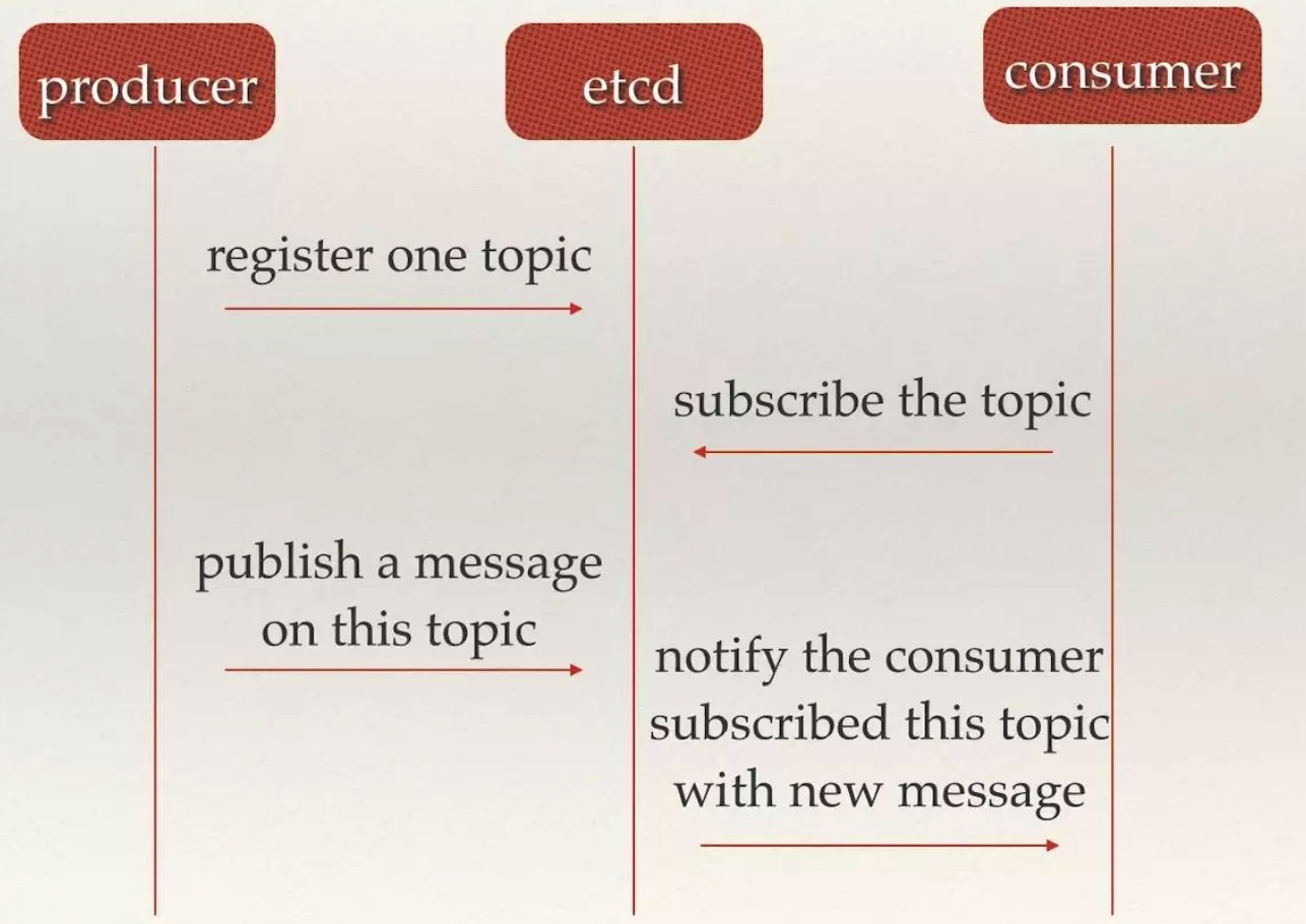 这里用到了 etcd 中的 Watcher 机制,通过注册与异步通知机制,实现分布式环境下不同系统之间的通知与协调,从而对数据变更做到实时处理。实现方式通常是这样:不同系统都在 etcd 上对同一个目录进行注册,同时设置 Watcher 观测该目录的变化(如果对子目录的变化也有需要,可以设置递归模式),当某个系统更新了 etcd 的目录,那么设置了 Watcher 的系统就会收到通知,并作出相应处理。