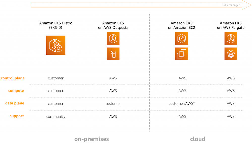 对于 EC2 上的 EKS,你可以 自己 管理节点,也可以使用 托管节点组。