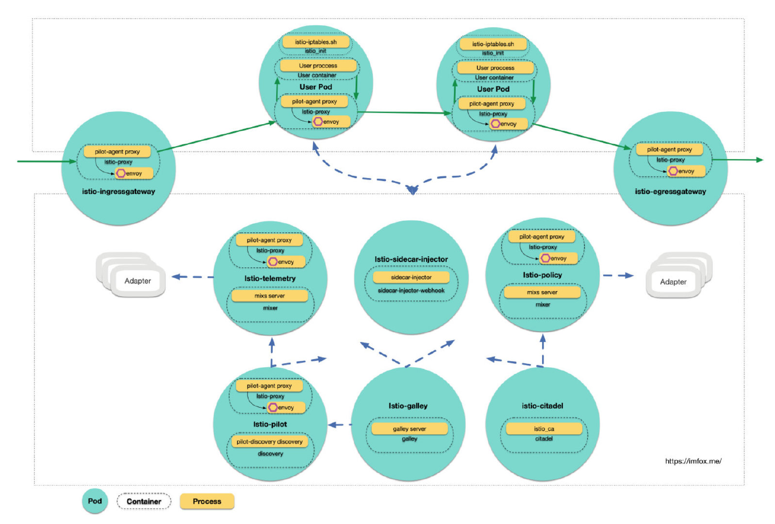 将istio系统组件细化到进程级别, 大概是这个样子: