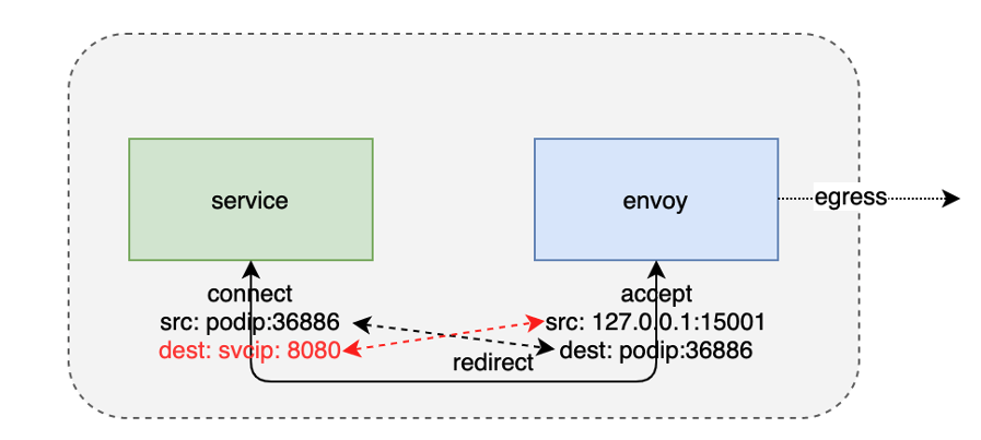 egress 会稍微复杂一点,在一个 egress 端服务程序对外发出的请求被 iptables 规则重定向到了 envoy 监听的一个 15001 的端口。在这里,发起方的源地址和接收方的目的地址是一一对应的,但是发起方的目的地址和接收端的源地址有了一个变化,主要是由于 iptables 对地址有一个重写。所以我们在存储到 sockhash 中的时候,需要对这部分信息进行一个处理。由于 istio 的特殊性,直接可以把它改写成 envoy 所监听的一个本地服务地址。这样再存储到 sockhash 当中,它们的地址信息还是可以反向一一对应的。所以在查找的时候,还是可以根据一端的 socket 地址信息查找到另一端的 socket,达到数据拷贝的目的。