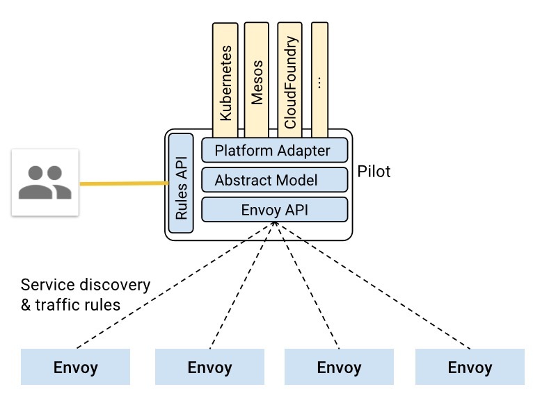 service、endpoint、pod、node等资源信息,监听istio控制平面配置信息(如VirtualService、DestinationRule等), 翻译为Envoy可以直接理解的配置格式。 - proxy:也就是Envoy,直接连接discovery service,间接地从Kubernetes等服务注册中心获取集群中微服务的注册情况