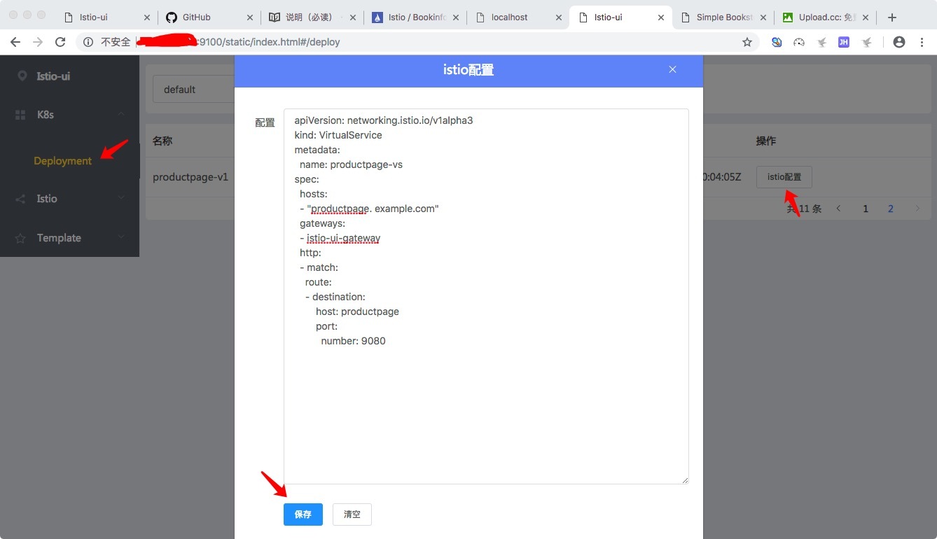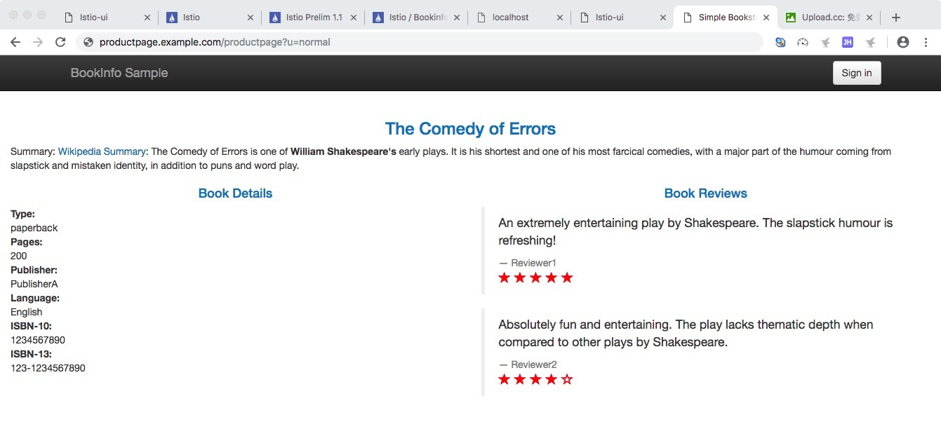 在任务开始前先确认已安装k8s,istio和istio-ui,在这个任务中我们使用k8s安装istio-ui,用官网的Bookinfo作为例子。