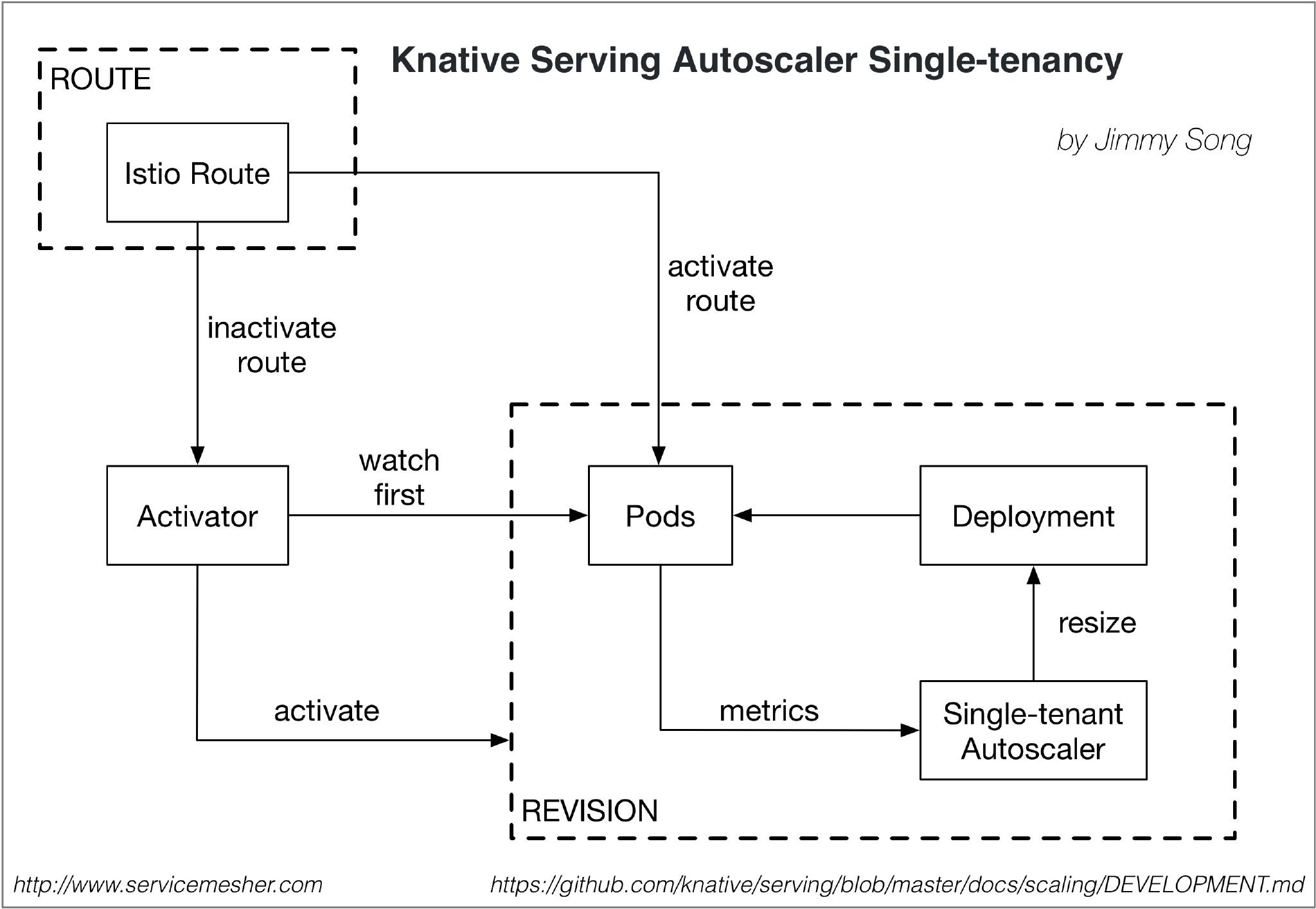 上图基于 https://github.com/knative/serving/blob/master/docs/scaling/DEVELOPMENT.md 绘制。