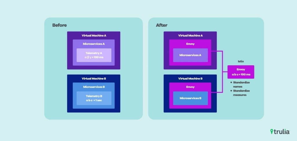 Trulia致力于将 https://www.trulia.com 单体应用分解成面向服务(SOA)的架构。所有支持的APIs和服务都将替换成工程部门AWS账号下拥有的各种功能单元。许多遗留AWS服务都是通过AMI映像promotion进行部署的,并使用各种不同的方法实现可观测性。将测量工具添加到代码库和基础架构所需的手动操作一直是个传统痛点。此外,这种用于构建可观测性的手动、个性化方法意味着没有单一的代码库可以在增强和工具上进行协作。