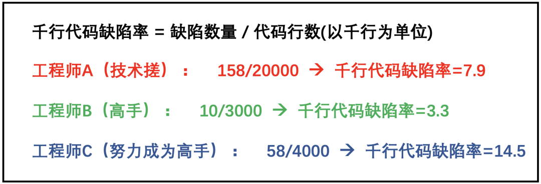 由此看出,基于千行代码缺陷率对这三个工程师的评价显然是有失公允的。