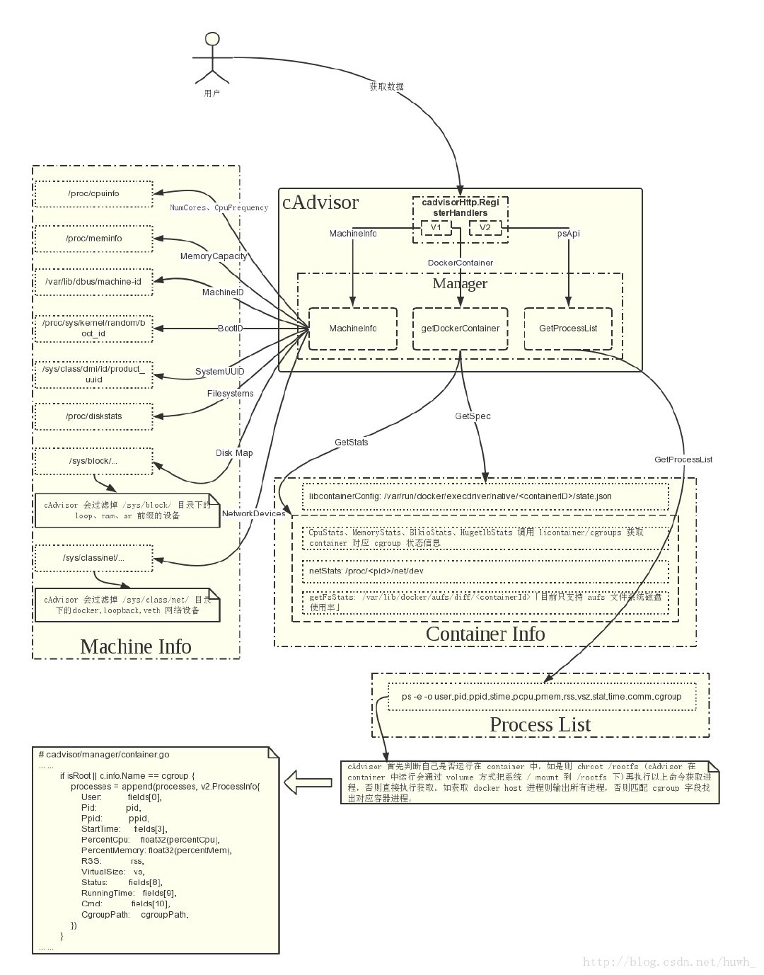 - cAdvisor: 来自 Google 的容器监控工具,也是 Kubelet 内置的容器资源收集工具。它会自动收集本机容器 CPU、内存、网络和文件系统的资源占用情况,并对外提供 cAdvisor 原生的 API。随 kubelet 启动 –cadvisor-port = 1