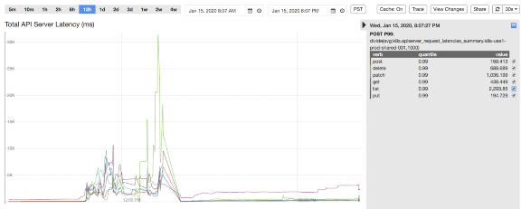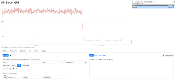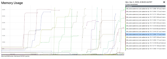 2020年晚些时候,一个基础组件在与kube-apiserver集成时出现bug,导致向kube-apiserver发起大量请求(获取所有Pod跟节点)。这引起Kubernetes主节点资源使用率激增,然后触发OOMKilled。幸运的是这个有问题的组件很快被发现并回退。但此次事件中,平台的性能下降了,包括工作负载执行延迟和请求状态过期。