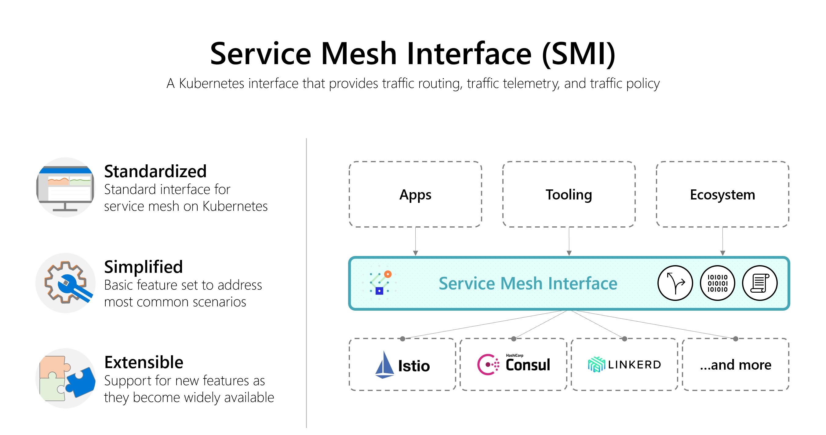 - Hello Service Mesh Interface (SMI): A specification for service mesh interoperability: 来自微软的博客,比较权威,本文很多内容是援引自此文