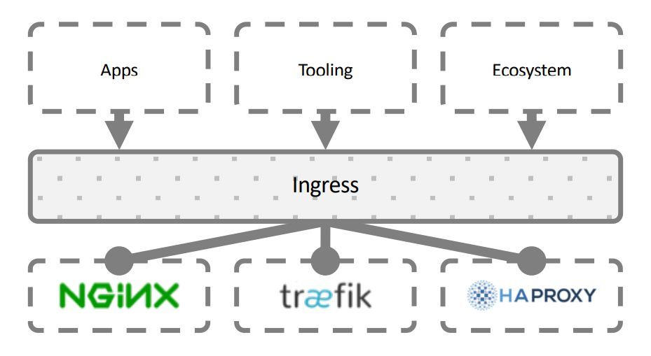 是不是觉得 SMI 的概念有种熟悉的味道?是的,没错,类似的事情在k8s中之前就发生过很多次,比如 CNI、CRI、CSI,还有下图展示的 Ingress: