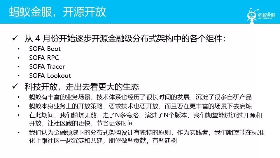 因为蚂蚁金服在公司策略上有科技输出的内容,不仅仅我们自己用,我们还需要给出去。