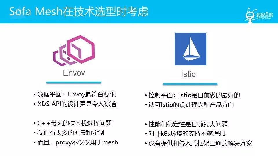 主要是三个内容:一是 SOFA Mesh的技术选型,二是它的架构设计,以及在最后跟大家聊一下,蚂蚁金服在 SOFA Mesh上的开源策略。